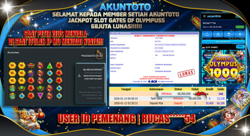 AKUNTOTO JACKPOT GATES OF OLYMPUS 1000 Rp 68.000.000 RABU, 14 JANUARI 2026