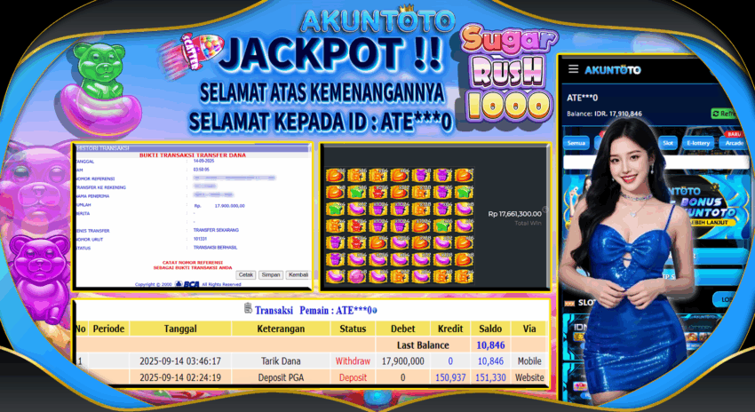 AKUNTOTO JACKPOT SLOT SUGAR RUSH 1000 Rp 17.900.000 MINGGU 14 SEPTEMBER 2025