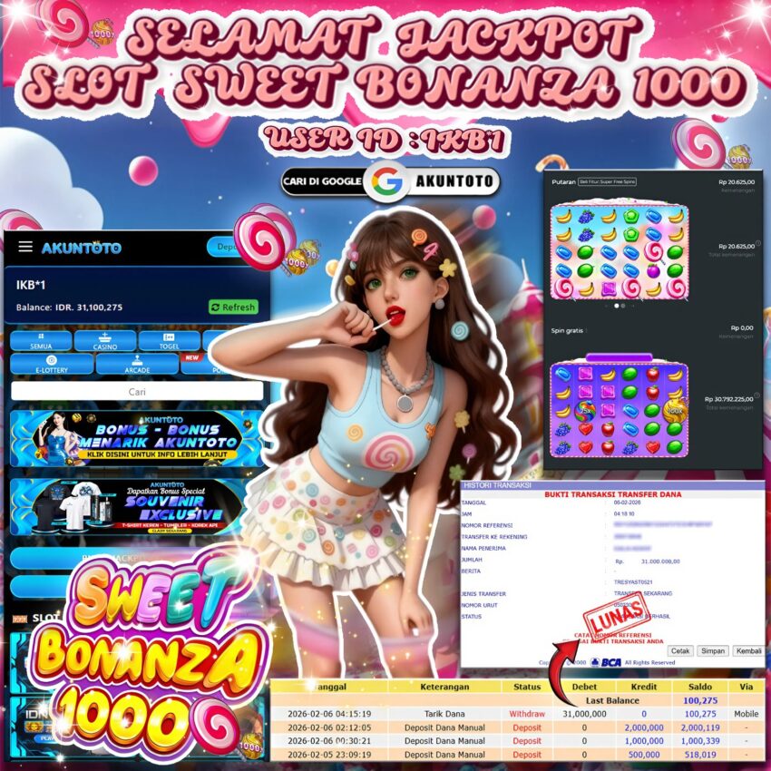 AKUNTOTO JACKPOT SLOT SWEET BONANZA 1000 RP 31.000.000 , JUMAT 06 FEBRUARY 2026