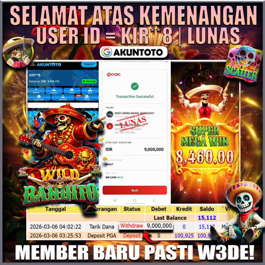 AKUNTOTO JACKPOT JACKPOT SLOT WILD BANDITO Rp9.000.000 , JUMAT 06 MARET 2026