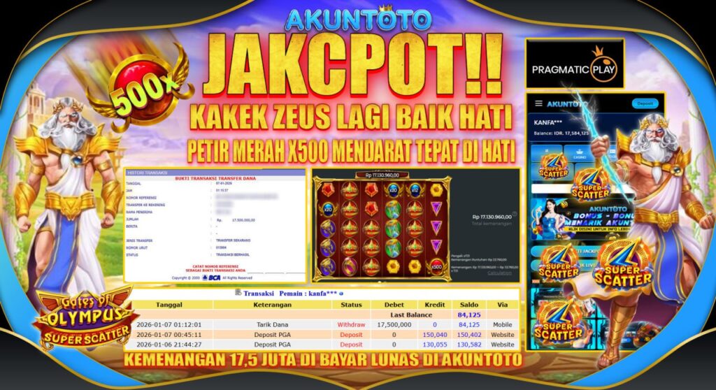 Selamat kepada User id KANFA*** Telah berhasil mendapatkan kemenangan besar pada permainan GATES OF OLYMPUS SUPER SCATTER 5 – 10 menit pihak AKUNTOTO sudah melakukan transfer kepada pemilik User id dan dana sudah dapat di cairkan oleh pemenang. Bukti pembayaran yang kami berikan merupakan bukti pembayaran yang SAH / VALID yang langung di dapatkan melaui tanda transfer transaksi dari Bank yang di tuju. Kami mengucapakan banyak Terima Kasih Kepada pemenang karena sudah mempercayakan kami sebagai Bandar Tepercaya yang membayar semua kemenangan member hingga lunas. Masih ragu dengan AKUNTOTO bos ? Di mana bandar togel online sekarang yang terpercaya seperti AKUNTOTO? Bandar yang mengirimkan kemenangan member tanpa bertele – tele. Jadi…. tidak perlu khwatir pada situs AKUNTOTO karena kemenangan anda berapapun akan dibayarakan hingga lunas kepada pemenang.